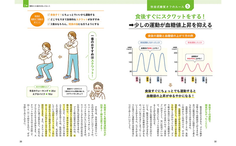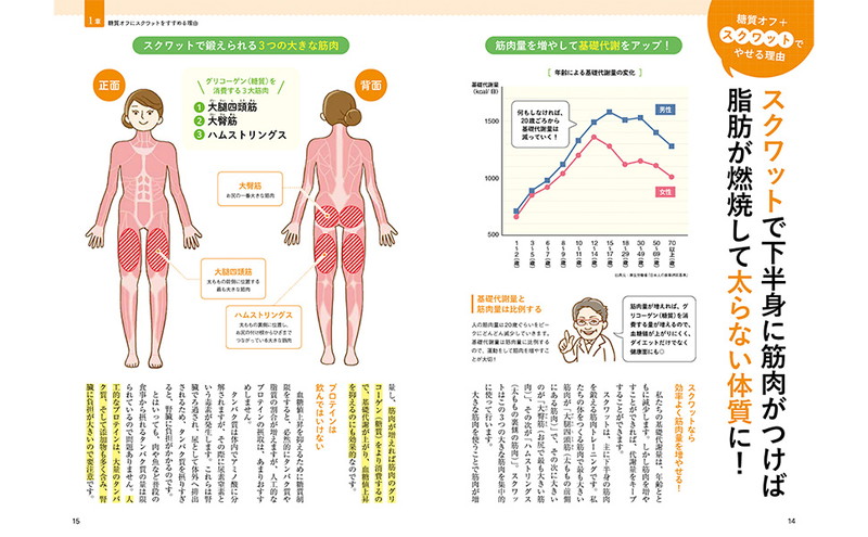 やり方は簡単、お腹いっぱい食べられる糖質オフ食に、食後すぐの「1分スクワット」を取り入れるだけ。