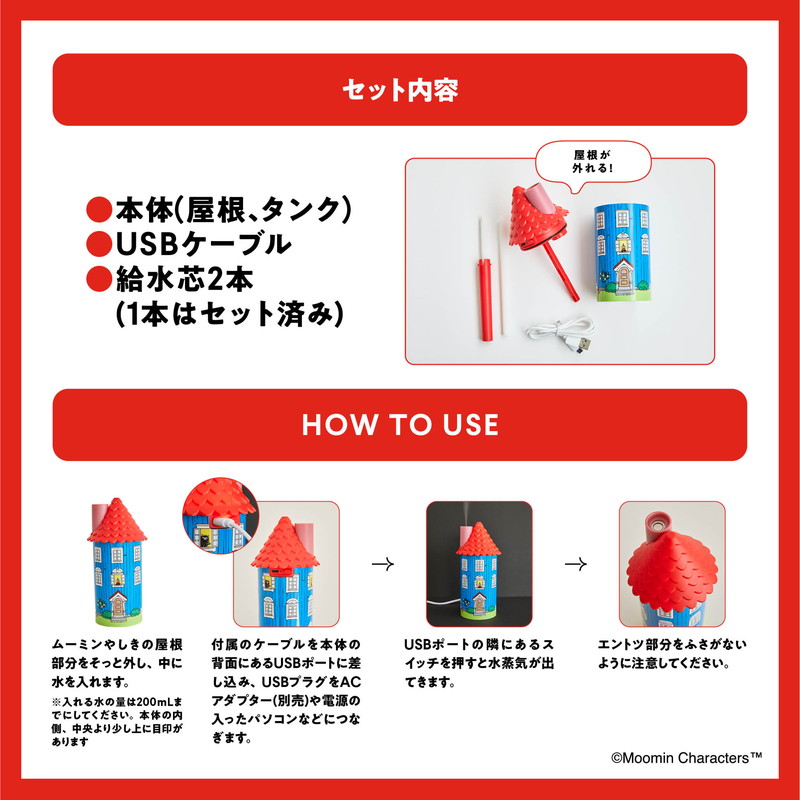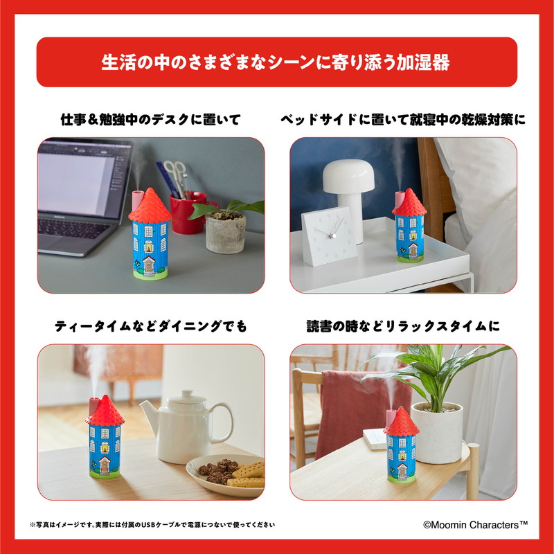 これからの季節に大活躍! ムーミンと仲間たちが描かれた楽しいムーミンやしきが、お部屋に潤いをプラスしてくれます。オブジェとして飾ってもおしゃれな加湿器のポイントをご紹介します。