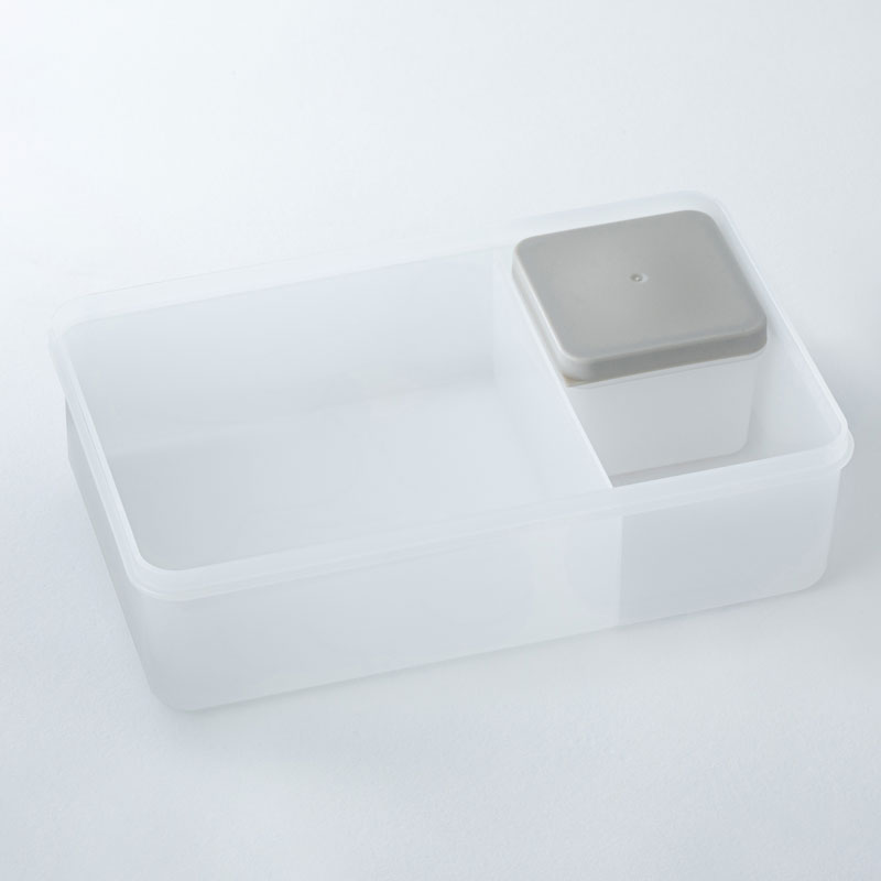 仕切られた小さいスペースには、フルーツやサラダなどがちょうどよく収まります。