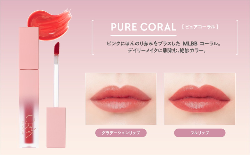 ピンクにほんのり赤みをプラスしたMLBBコーラル。デイリーメイクに馴染む絶妙カラー。
