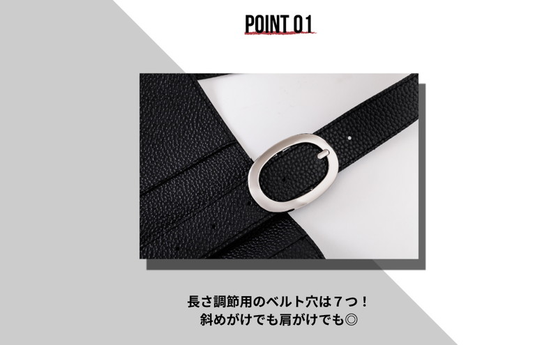 POINT 01 ストラップには長さ調節用の穴が7つ! 斜め掛けでも肩掛けでも