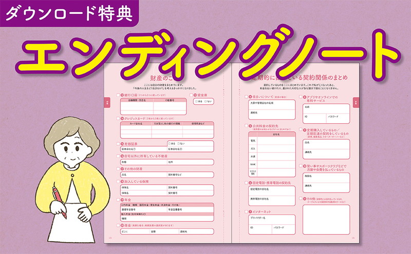 また、PDFダウンロード特典として「エンディングノート」をご用意しましたので、こちらもぜひ活用してください。