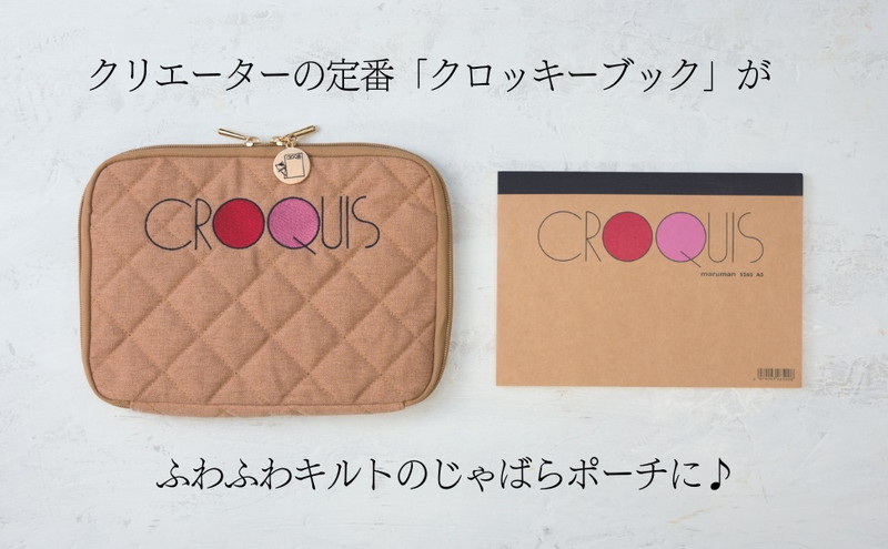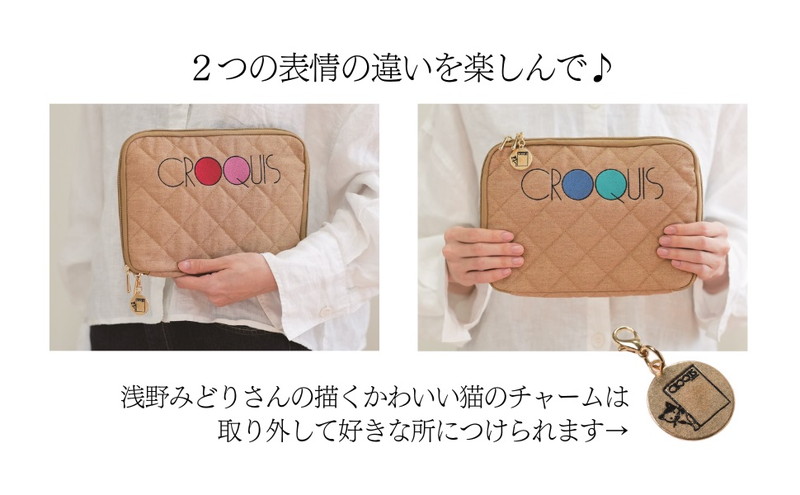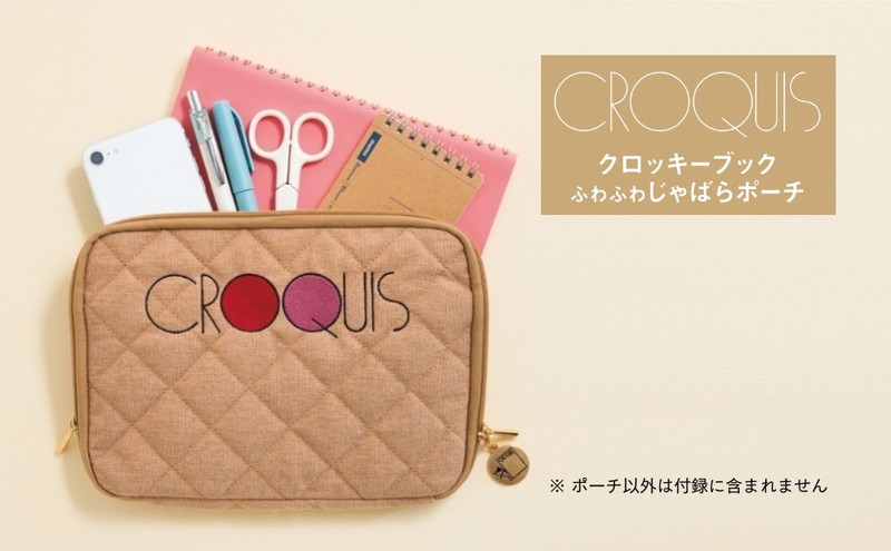 A4マルチケースが大好評の「クロッキーブック」の付録つきムック第2弾は、触り心地抜群のふわふわキルティング素材が新鮮な「じゃばらポーチ」。