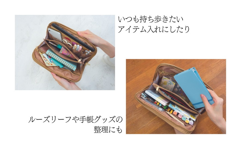 A5ノート・手帳・ペン・はさみ・メモ帳・スマホやミニタブレットなど、文具好きさんの大事なものがまるっと入ります♪