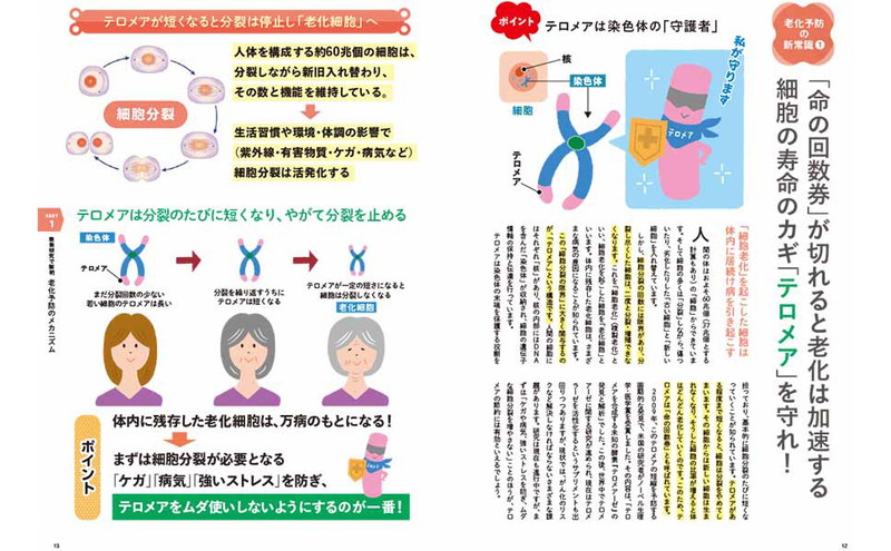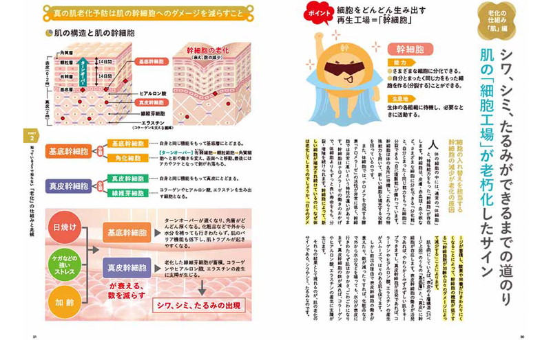 誰しもに待ち受ける、知ってるようで知らない老化について徹底解説します。老化のメカニズムから、老ける人と老けない人の生活習慣の違い、老化を少しでも遅らせる方法まで、医師の解説のもと図解でわかりやすく見せます。