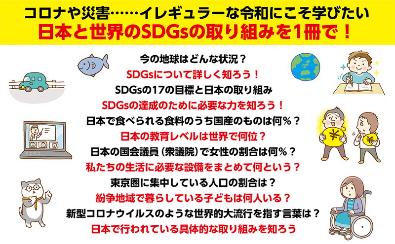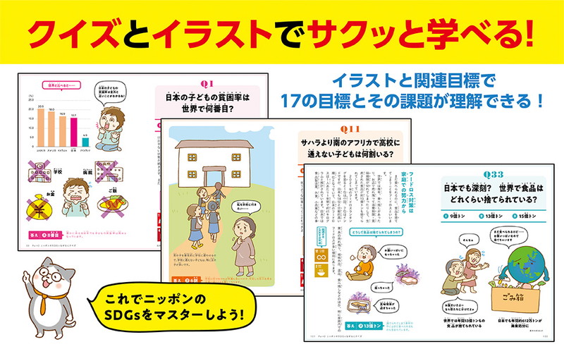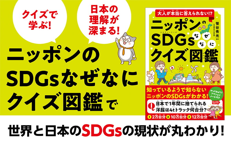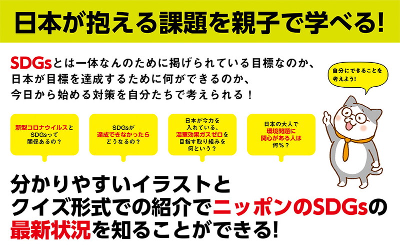 前作『大人も知らない!? SDGsなぜなにクイズ図鑑』に比べて、日本の問題を多く取り上げた「SDGSニッポン編」です。
