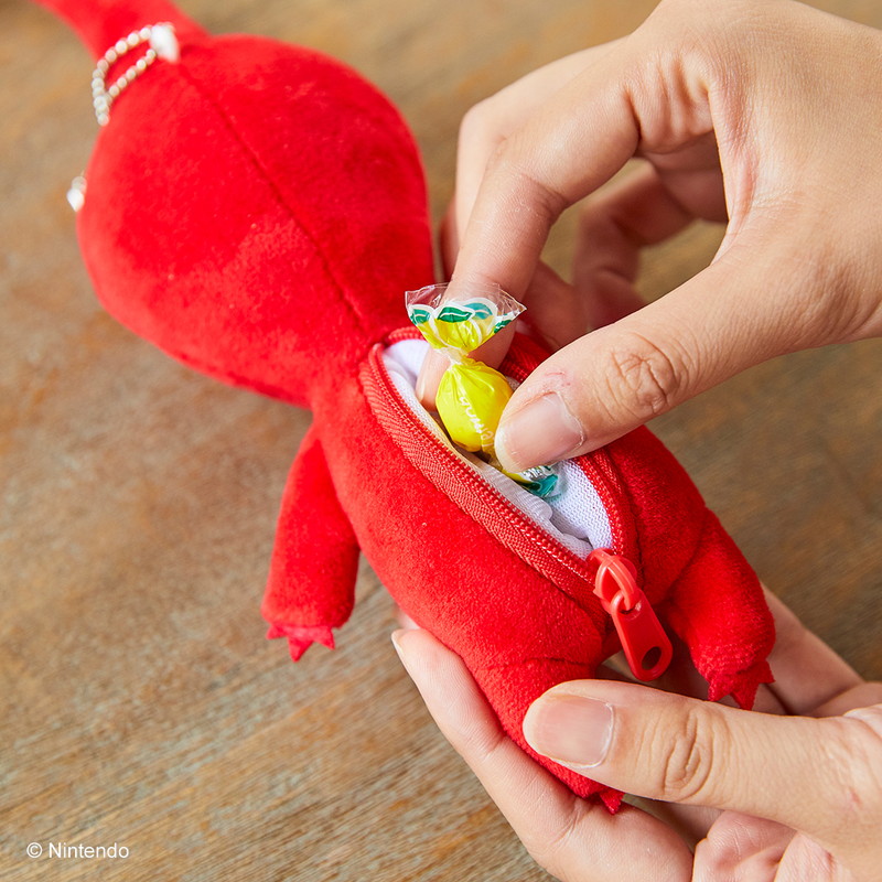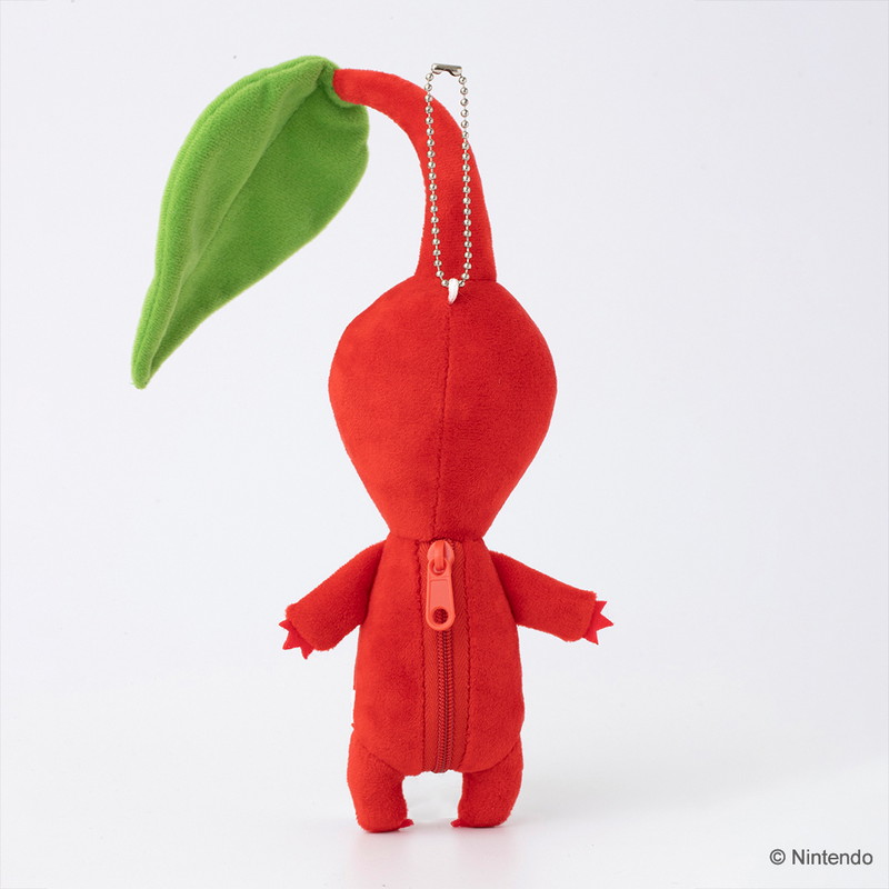 背中のファスナーを開けると、アメなどの小さなものが入るポーチになっています。ボールチェーンも付いているので、お部屋に飾ったり、バッグに付けてお出かけに連れていったり、楽しみ方はさまざま。ピクミンと過ごす癒やしライフをぜひお手元に!