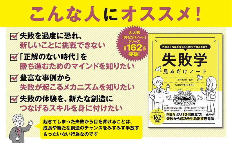 「正解のない時代」に自分だけの正解を導き出すための方法として、ビジネスパーソンのあいだで注目されている「失敗学」が、累計162万部突破・大人気「見るだけノート」シリーズに登場。