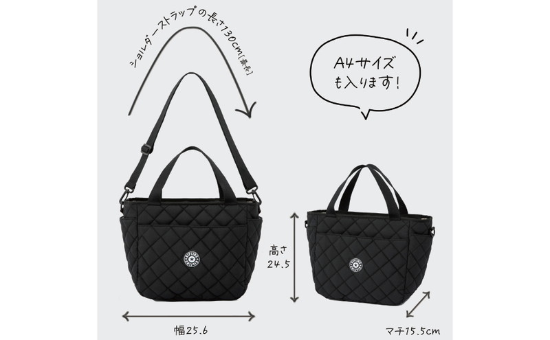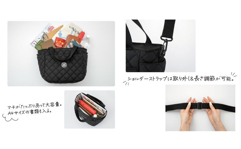 手提げ&ショルダーの2wayで使え、A4サイズの書類も入る抜群の収納力。