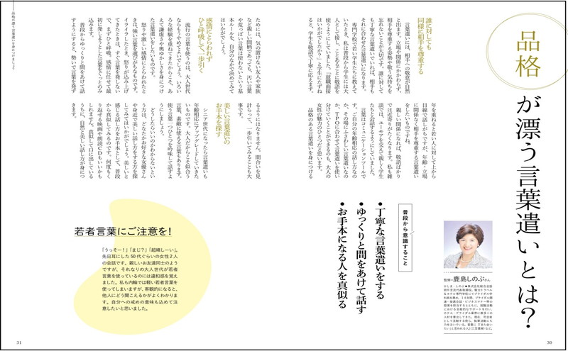 今からでも間に合う「品格を磨く言葉遣い」や「とっさの一言」が素敵になるためのポイントを言葉のスペシャリストがレクチャーします。