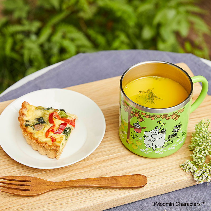 グリーンをベースに、自然の中でおさんぽを楽しんでいるようなムーミン谷の仲間たちのアートにほっこり♪
