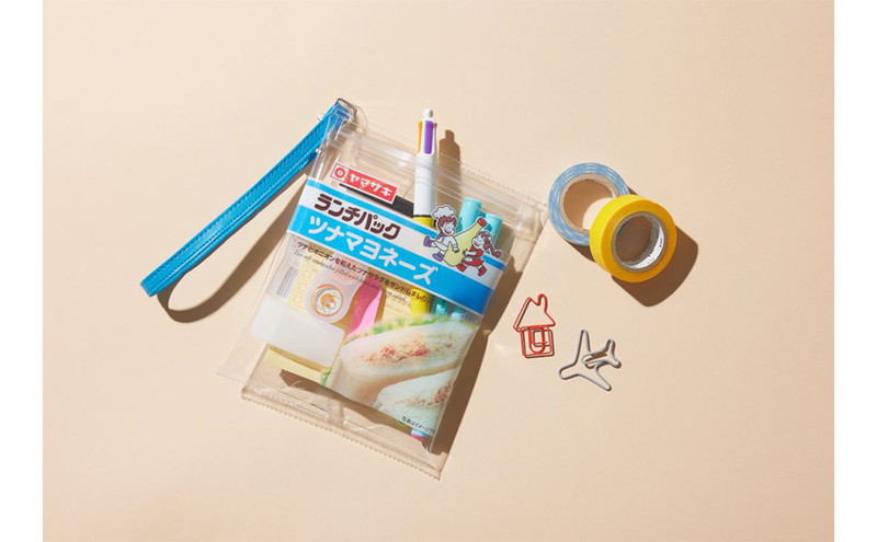 パッケージをかたどった透明ビニールポーチとふわふわ食パンポーチの2個セットです♪