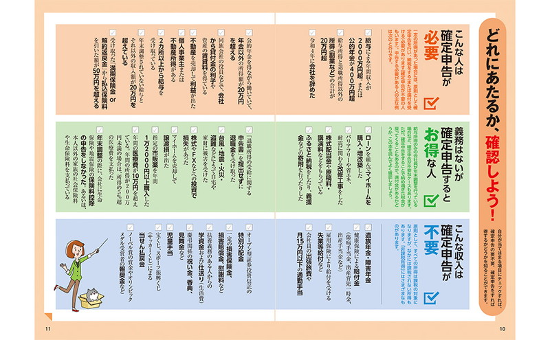 確定申告は個人事業主だけのもの、サラリーマンには無縁だと思っていませんか? 実はサラリーマンでも、ある条件にあてはまる人は確定申告しなければなりません。対象となるのは医療費控除を受ける人やふるさと納税、住宅ローン、株式や投資、近年増えている副業をしている人など様々。本誌は、初めての人でもサクサクと確定申告ができるように、控除対象者をわかりやすく解説し、実際の記入例を示します。さらに、初めての人でもベテランの人でも楽に書類作成ができるように、エクセルシートのダウンロード特典つき。陥りやすいミスについても丁寧に解説しています。
