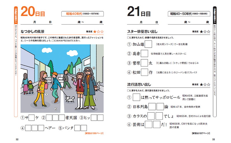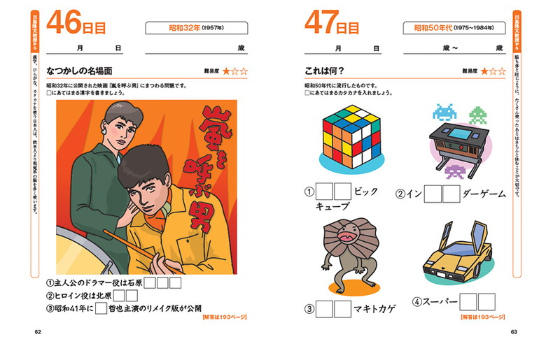 ※本書は、小社より刊行した『川島隆太教授の脳力を鍛える昭和思い出し100日パズル』『川島隆太教授の脳力を鍛える昭和懐かし150日漢字パズル』『川島隆太教授の脳力を鍛えるまちがいさがし読者が選んだ傑作集DX』に掲載したパズルを抜粋、再編集し、新規パズルを追加したものです