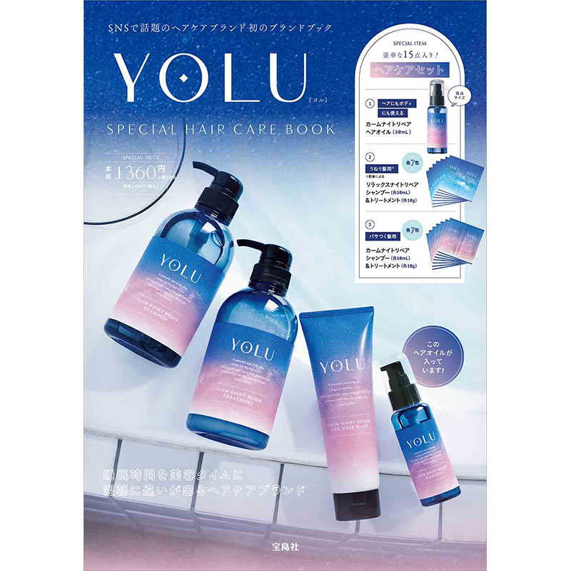 さらに「ヘアオイル」はオンライン公式ストアで1540円で販売しているアイテム(*1)。つまり、これ1本を買うよりお得に、同サイズのヘアオイルとシャンプー&トリートメントが試せて、そのうえ「YOLU」をより深く知れるBOOKまでセットで手に入る、スペシャルすぎるBOOKなのです。