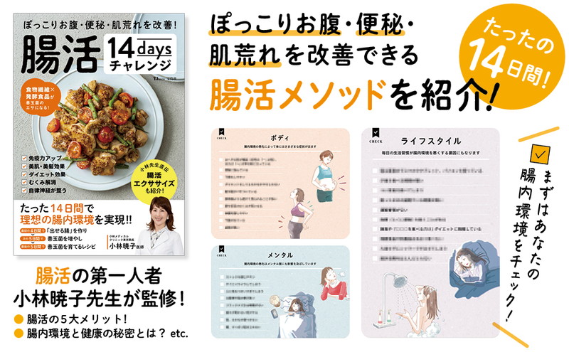本誌では、腸活の第一人者である小林暁子先生監修の「腸内環境を改善する14日間メソッド」をご紹介!