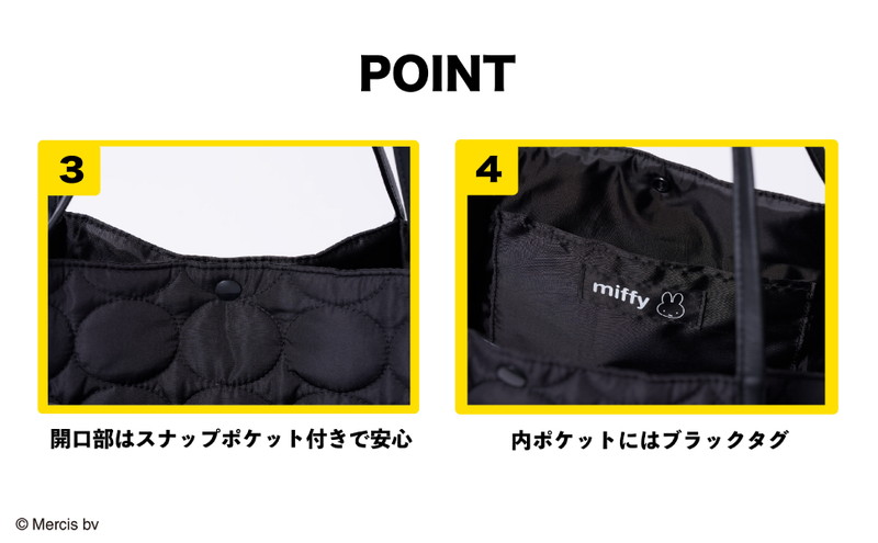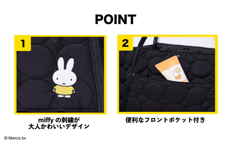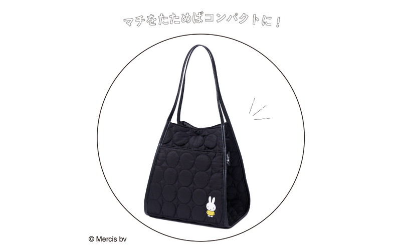 ふんわり軽くて持ちやすい、ミッフィーのキルティングバッグができました。シンプルなブラックキルティングにミッフィーのアップリケ刺繍が大人可愛いデザインです。