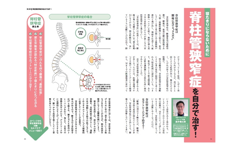 腰痛、ひざ痛、脊柱管狭窄症はもちろん、尿漏れ・頻尿対策の記事なども掲載。
