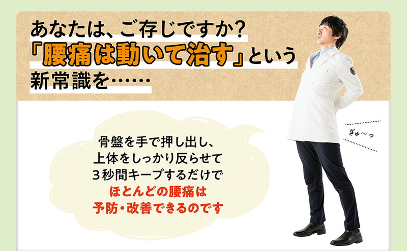 「腰痛は動いて治す」ということが常識となりつつあります。