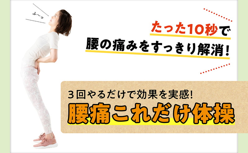 本誌で紹介する「腰痛これだけ体操」では、たった10秒腰を反らせるだけで、