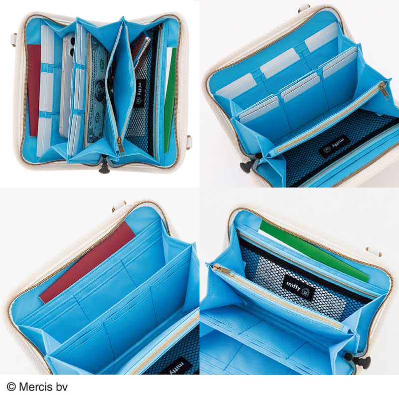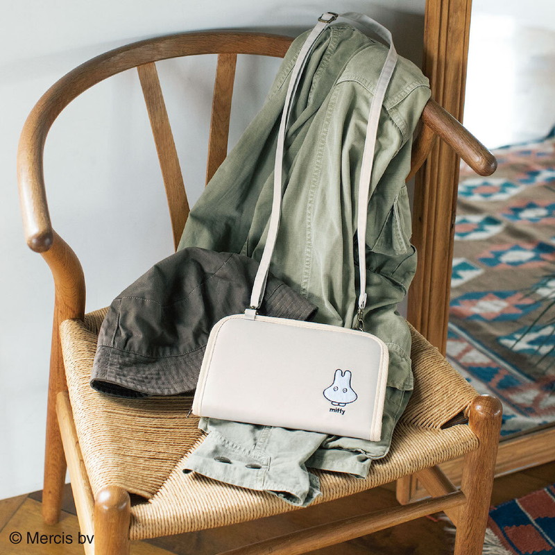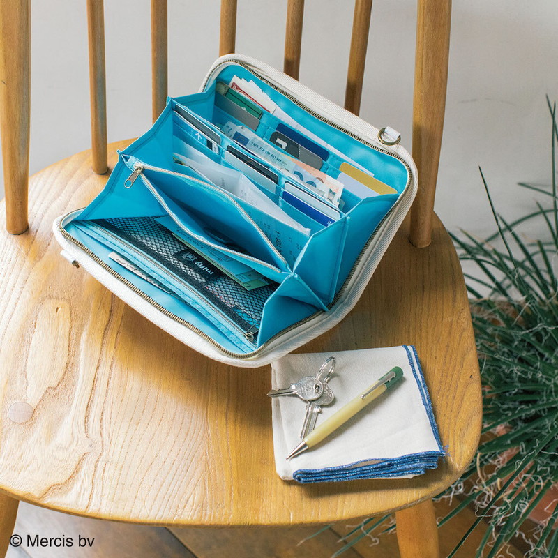 お財布としてはもちろん、トラベルポーチ、母子手帳ケース、お薬手帳ケースなど、さまざまな用途で活躍してくれるアイテムです。取り外し可能なショルダーストラップ付きだから、スマートフォンを入れて、これ1つでお出かけもできちゃいます。