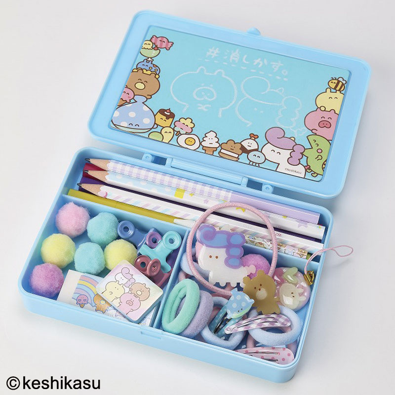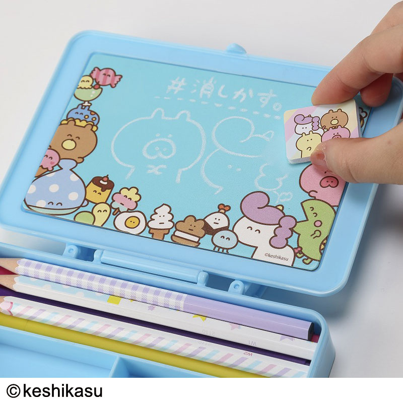 収納ボックスには黒板ボードがついていて、チョークと黒板消しも付属しています。黒板でおえかき遊びやメモ書きを残したり、ボックスに文房具やアクセサリーをしまったりと毎日大活躍してくれること間違いなし。誌面もキャラクター紹介をはじめ、人気キャラの描き方、かわいすぎる#消しかす。スイーツのレシピ、今回のために描き下ろされた漫画など、内容もりだくさんです。