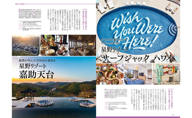 本誌では、美しいビジュアルをもとに、全63施設を徹底解剖。各施設の絶景や客室、グルメ、温泉、アクティビティまで多種多様な見どころを解説しています。