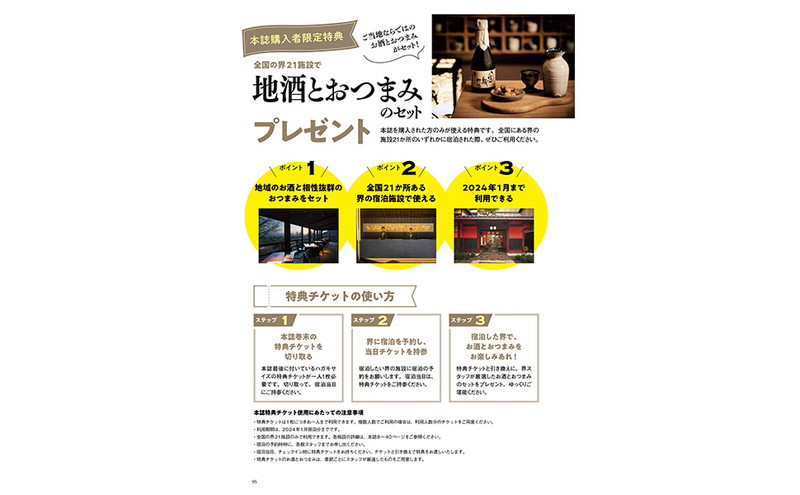 また、本誌の読者だけが楽しめる限定の特典(地酒)もあります。