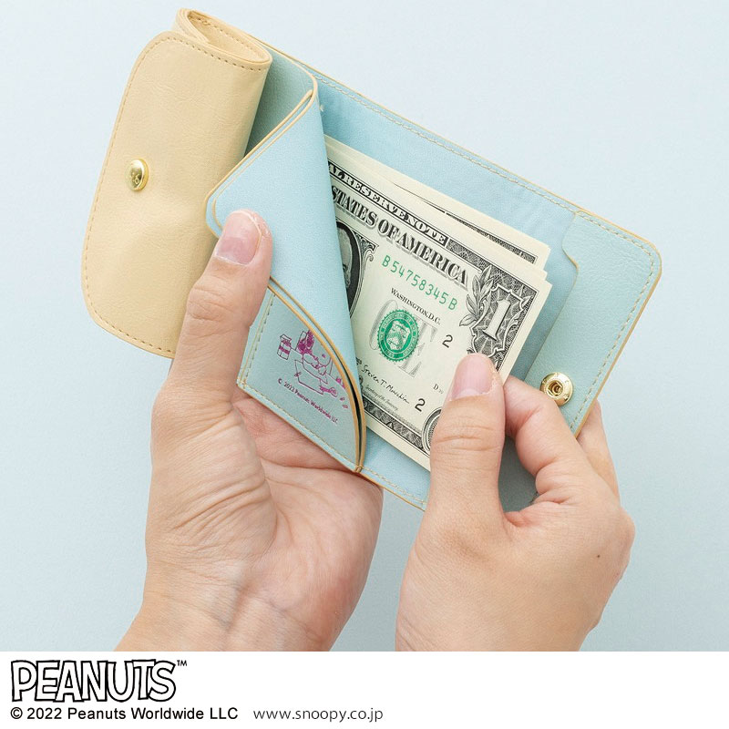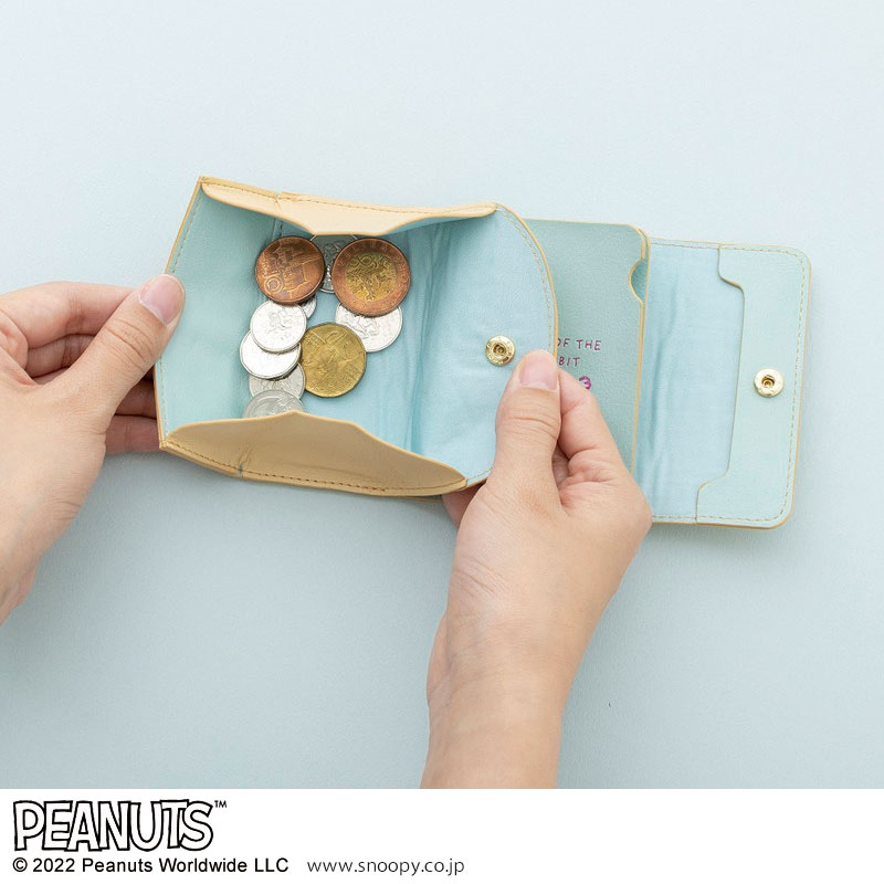 ガバッと開いて中身が取り出しやすいコインケースや、L字ポケットの札入れなど、かわいいルックスだけでなく使いやすさにもこだわりました。いつも持ち歩きたくなるスヌーピーの極小財布と、新しい一年をスタートしましょう。