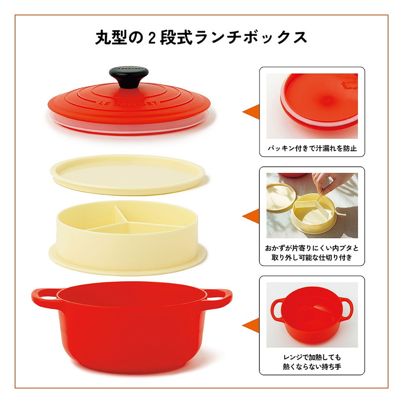 「ル・クルーゼ」で定番人気のお鍋“ココット・ロンド”をモチーフにした可愛らしいお弁当箱です。