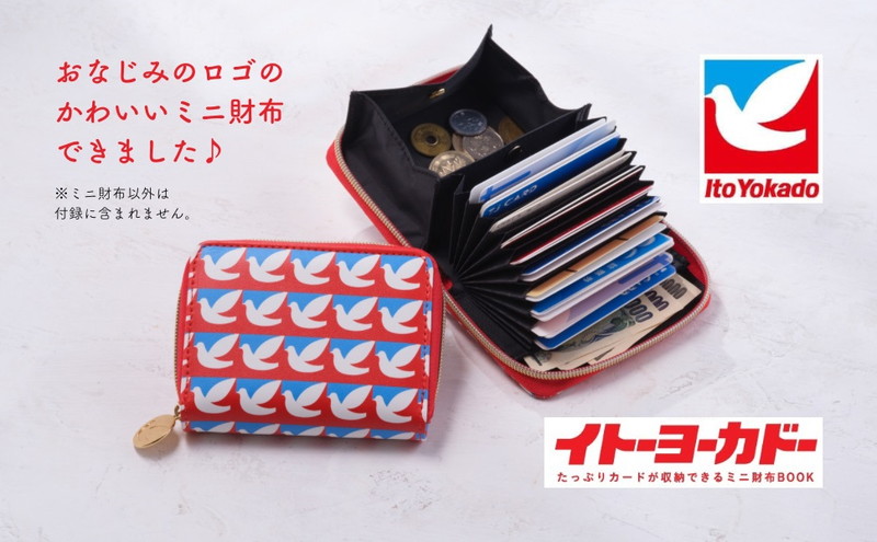 本誌の特別付録は、このロゴ柄がポイントの 「たっぷりカードが収納できるミニ財布」。便利で楽しい、イトーヨーカドーの本です。
