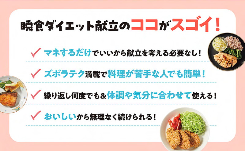 1週ごとに朝昼晩の献立をご紹介します。