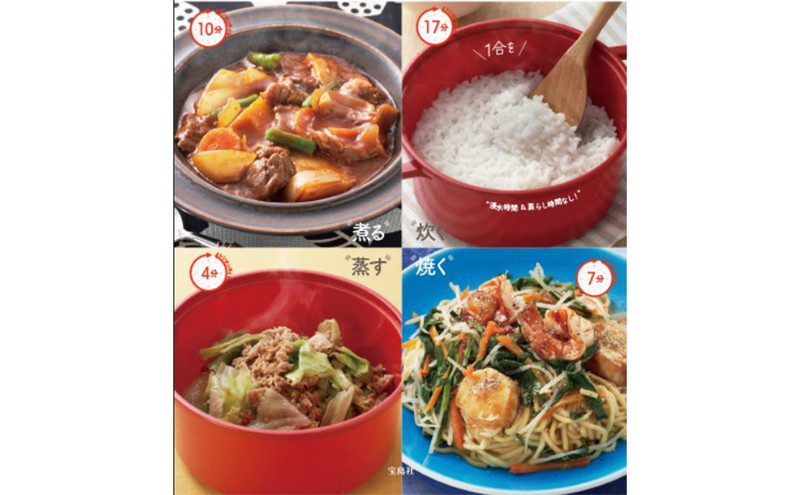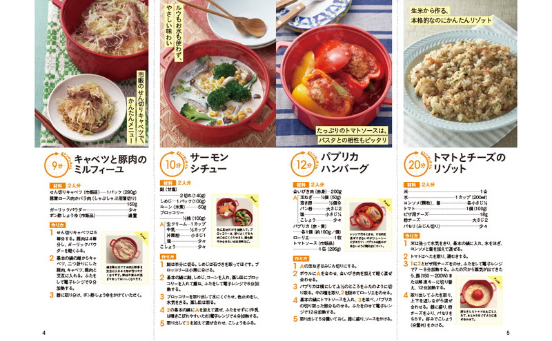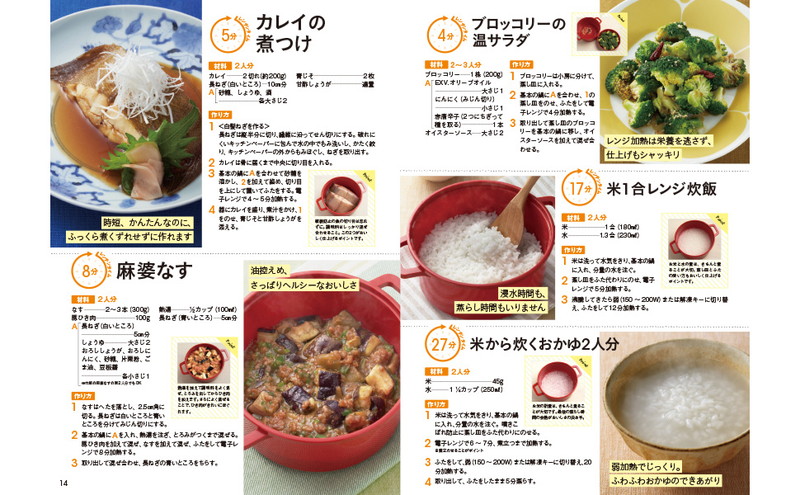 レンジ調理では「煮る・焼く・蒸す・炊く」ができて、いろいろな料理が楽しめます。