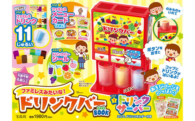 ボタンを押すと下に置いたコップにドリンクが入り、ドリンクバーごっこができます。