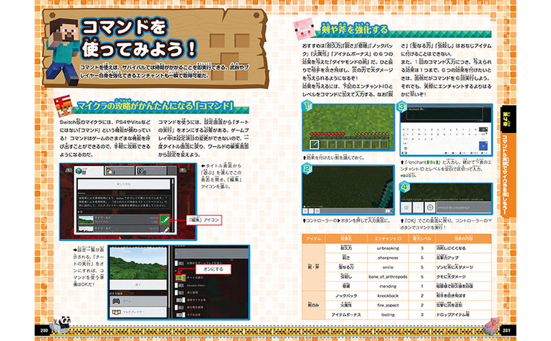 Nintendo Switch版『マインクラフト』の攻略本で一番売れている宝島社のマイクラ攻略本シリーズのニューラインナップ「やりこみ超大全」は、オールカラー416ページの大ボリューム(マイクラ攻略本史上最大)です。建築、しかけ、コマンドなど、「最強攻略バイブル」に次ぐ2冊目の攻略本として、マイクラをもっとやりこみたい人の知りたい情報がたっぷり詰まった分厚い一冊。もちろん最新アップデート版に対応しています。