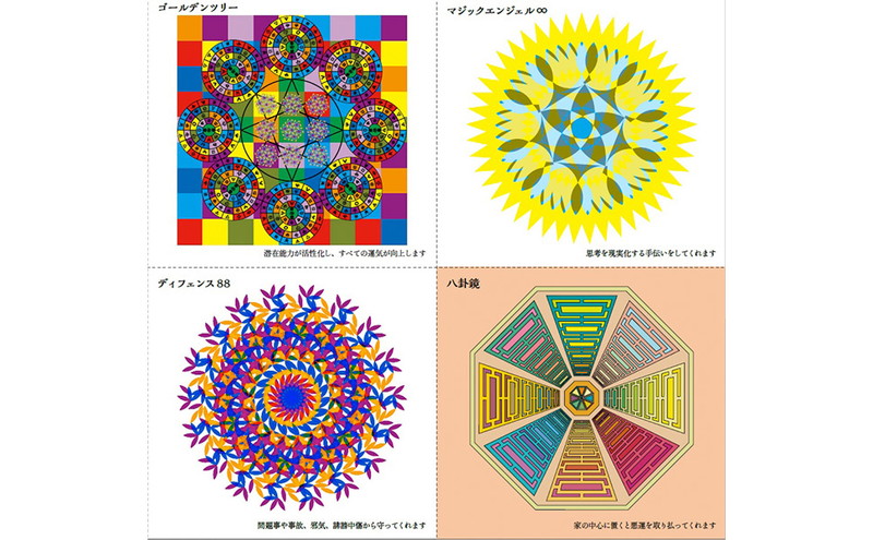 マンダラ模様のクスリ絵の効能は潜在意識に働きかけるエネルギーを持っており、心身が癒やされます。