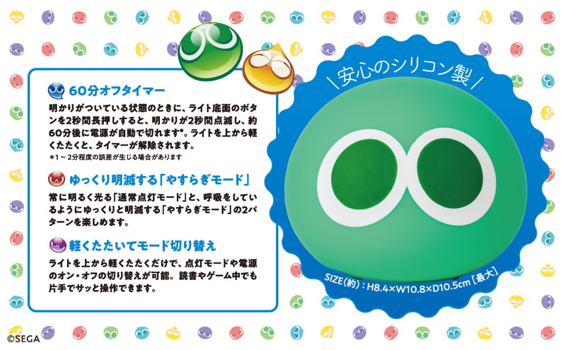 スペシャルアイテムは、ありそうでなかった、みどりぷよのルームライト。