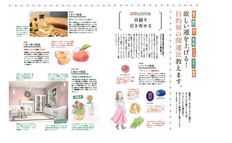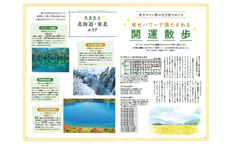 また、「良縁」「金運」「仕事」など、欲しい運気を上げる、目的別の開運法や、帝王占術から導き出した各12タイプとの相性など、人生を好転させる開運のコツが満載です。