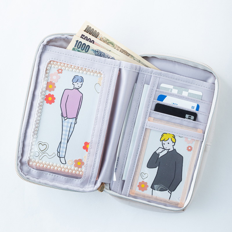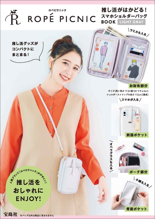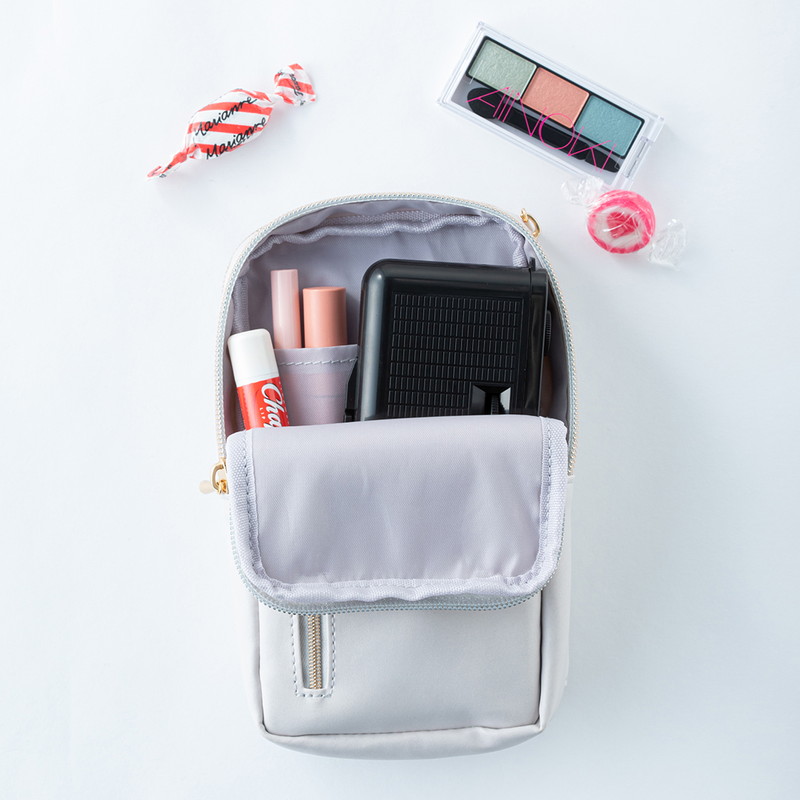 コンパクトなサイズ感ながら、充実した収納機能が付いています。フロントポケットの内装にはクリアポケットが付いているので、好きなアイドルやキャラクターの写真を入れれば自分だけのオリジナルバッグが作れます! お札や小銭を入れるポケットも内蔵しているので、このバッグ一つで身軽にお出かけできるのもポイントです。着る服を選ばないライトグレーの色味でどんなファッションにも合わせやすいです。