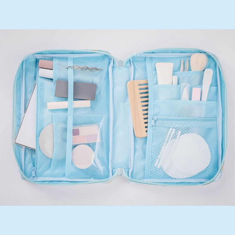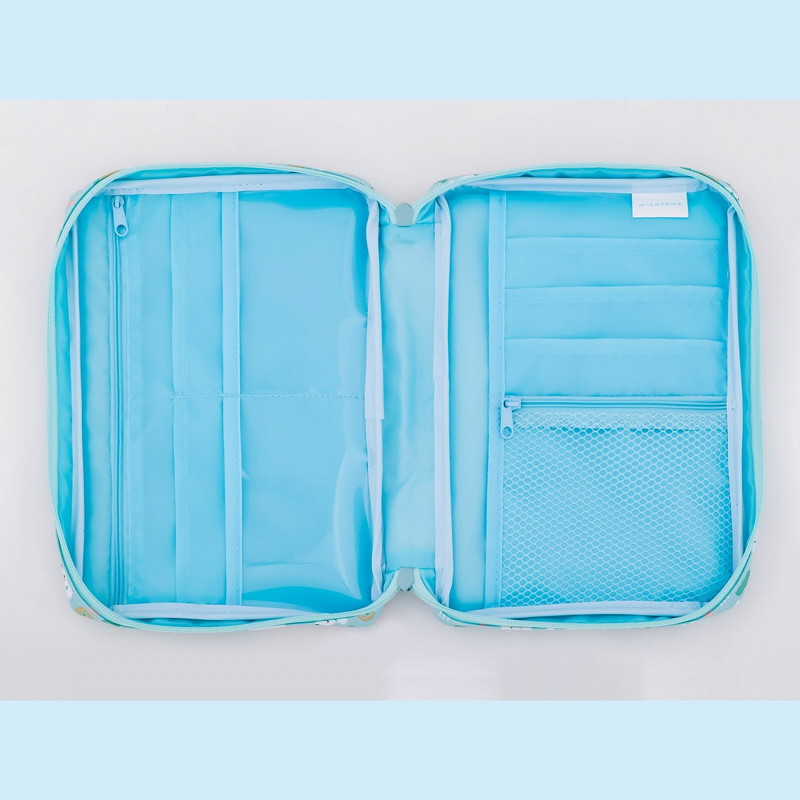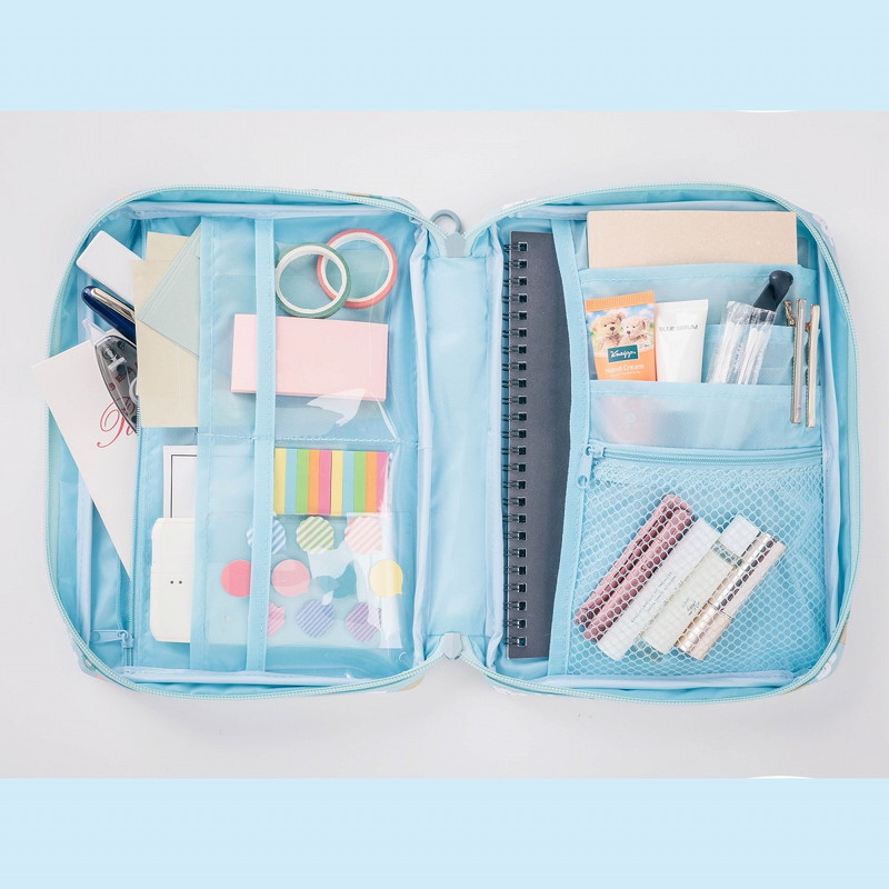 収納力抜群で、様々な用途に使える優れもの。ポーチの内側には10個のポケットが! シートシールやマスキングテープなど、文房具がたくさん入っちゃう。背面ポケットもついていて、ペンポーチにもぴったり。トラベルポーチ、お仕事ケースとしても使えます。