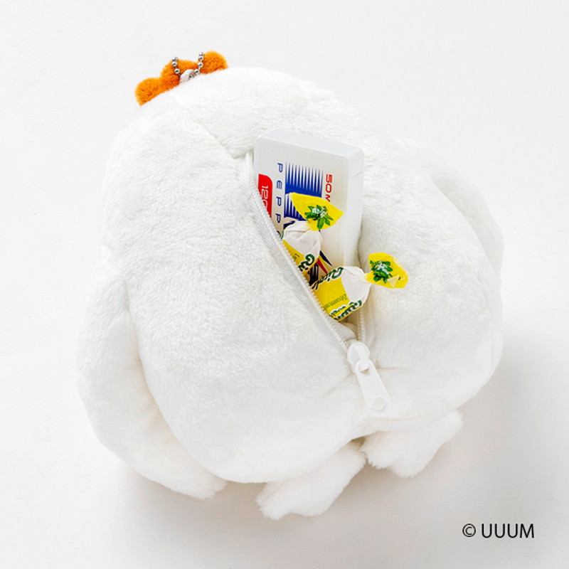 スペシャルアイテムは、ニワトリのおすわりぬいぐるみポーチ。口元から出るよだれが絶妙に愛らしい……。ボールチェーン付きで、バッグに付けることも可能です。背中のチャック付きポケットには、飴などの小物を入れてみても。