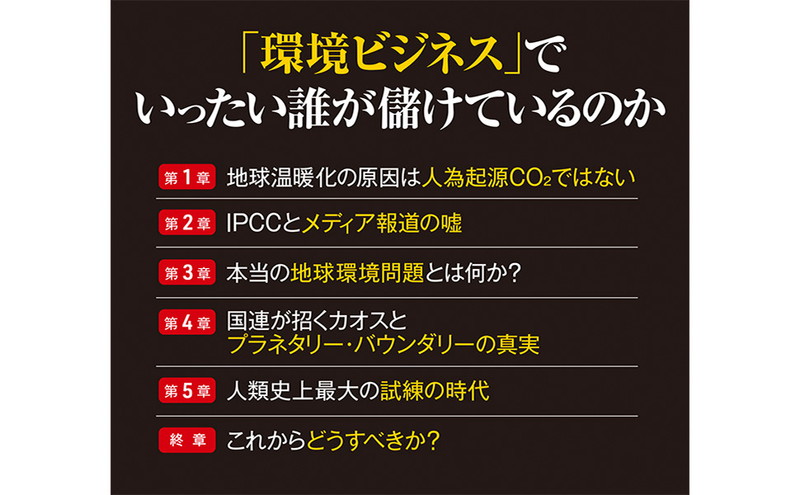 本書では、環境保護運動の科学的検証と経済合理性を大テーマに、「CO2犯人説」などの矛盾と危険性について掘り下げる。