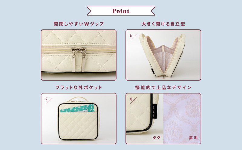 これまでたくさんのコスメポーチを使ってきたななこさんだからこそ、ポーチに関して我慢していた「あとちょっとのこと」を全部解消するポーチを販売。