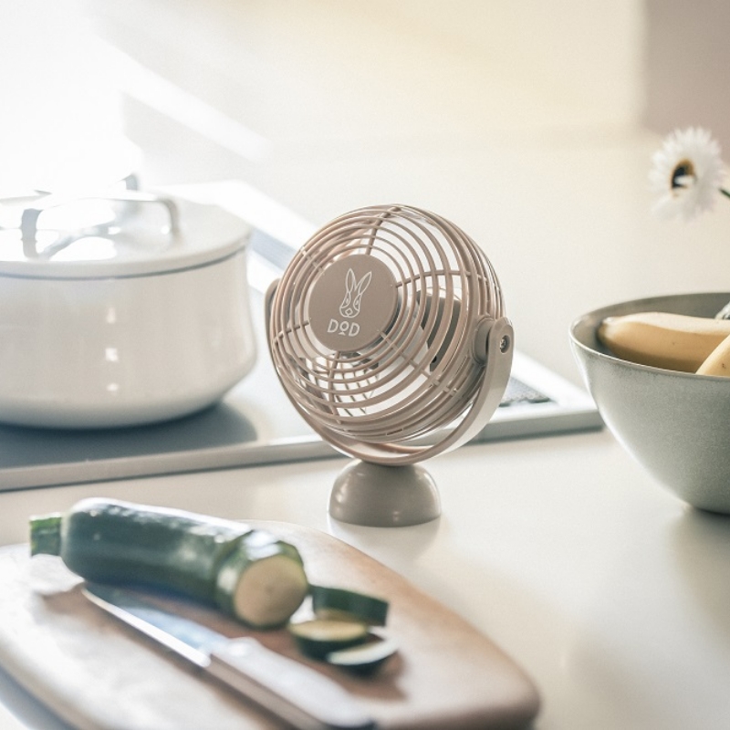 上下360°回るファンは好きな角度に調整できるので、デスクでの作業中やキッチンでの調理中など大活躍すること間違いなし。