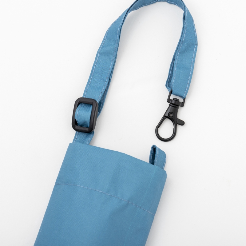 先端部分にオリジナルのフックがあるので、吊るして干すこともできます。収納袋は取り外せるストラップ付きで、手持ちのバッグに取り付けられます。
