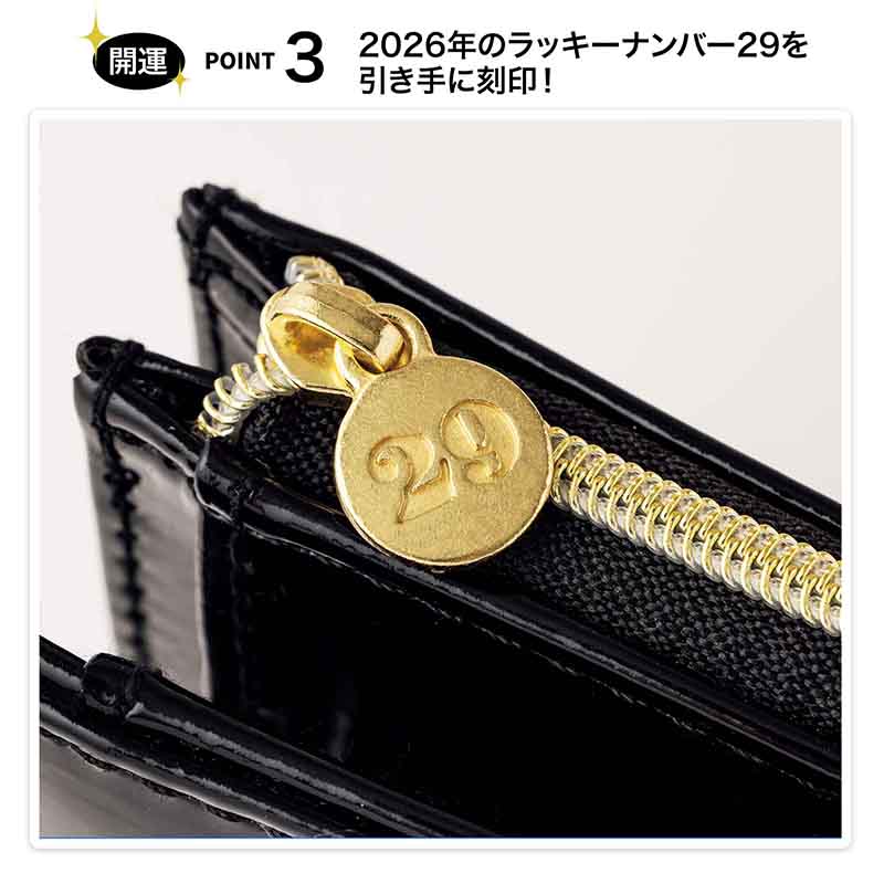 金運アップにつながる黒とゴールドをベースに、2026年の開運キーワードの「光沢」、ラッキーナンバーの「29」を組み合わせました。