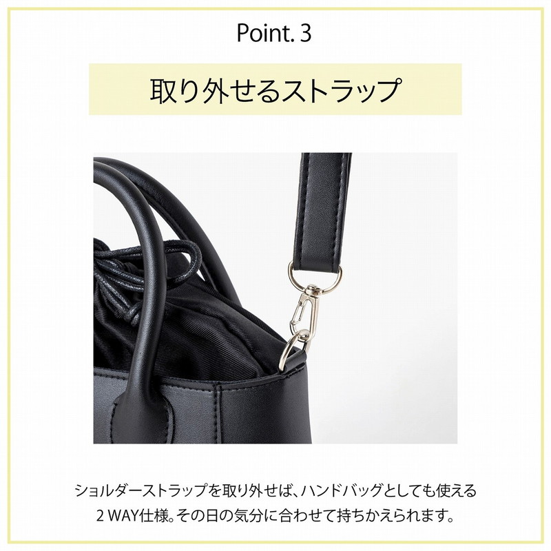 ショルダーストラップを取り外せば、ハンドバッグとしても使える2Way仕様。