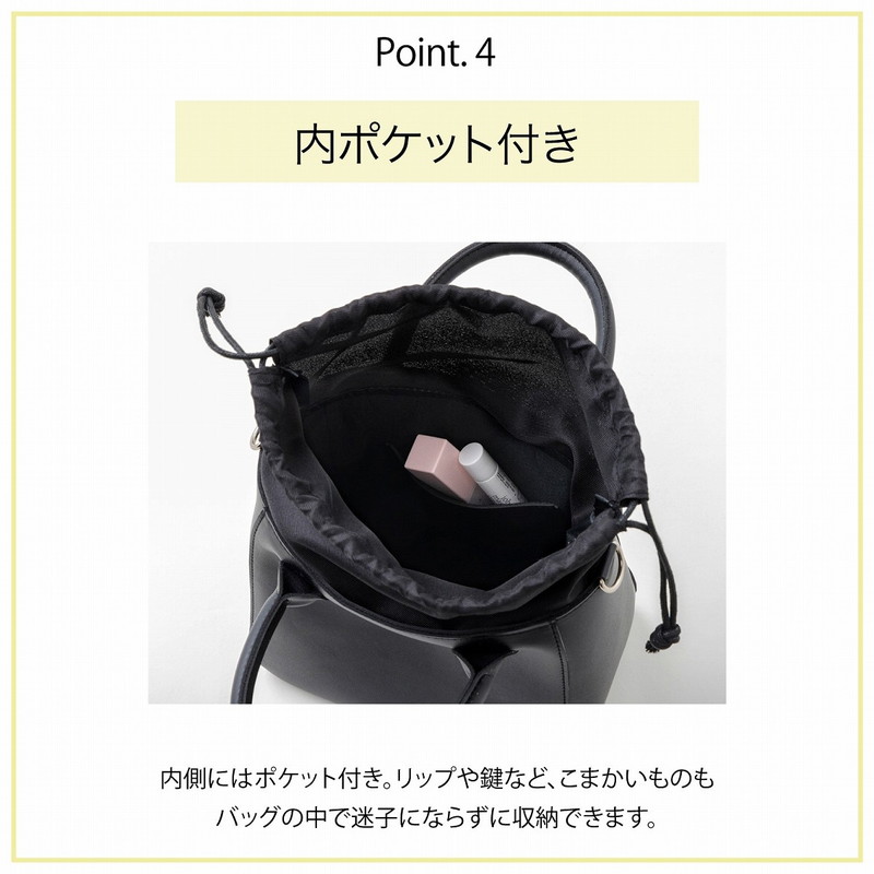 内側にはポケット付き。リップや鍵など、細かいものもバッグの中で