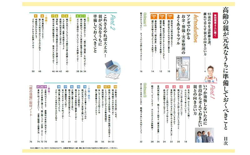 実家の名義変更、お墓や成年後見人、ご近所づきあいなど、不安要素は枚挙にいとまがありませんが、まだ病気など「目に見える不安」がなくても、前もって準備しておく必要があります。本誌では、高齢の親が元気なうちに、話しておくべきこと、準備しておくべきことを徹底解説します。少しずつ不安を取り除いていきましょう。
