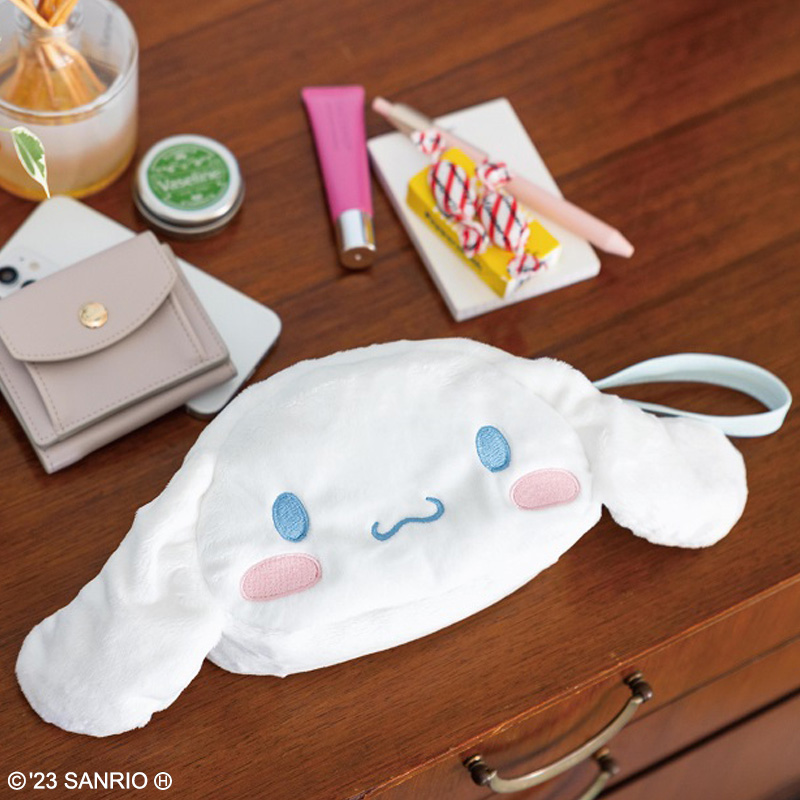 幅があるから見た目以上の収納力。耳まで柔らかく、ぬいぐるみのような質感にこだわった厚手のポーチは、いつでもバッグに忍ばせておきたい大人も使えるかわいさです。